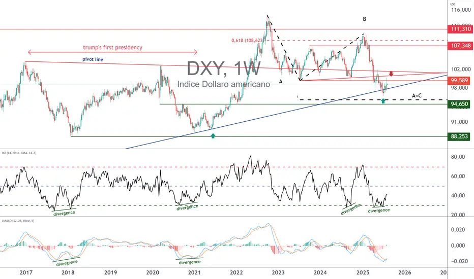 2) Analisi tecnica del DXY: rimbalzo a breve termine… ma ancora nessun’inversione di tendenza