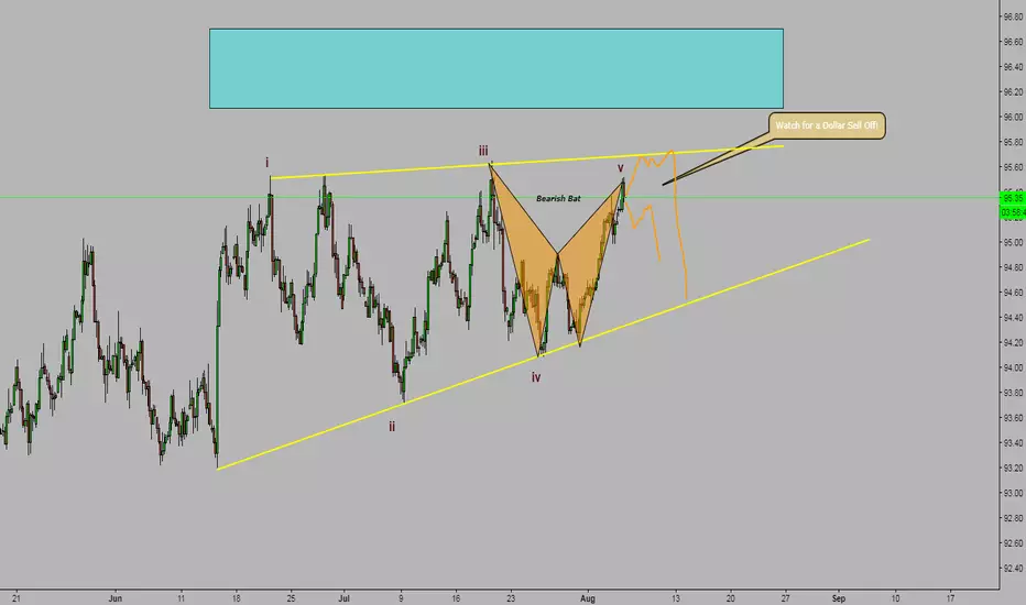 There is a strong possibility that we will see a US Dollar Sell off. We have a completed Bearish Bat and price is at a strong level of Supply. Also price is taking the shape of an Ending Diagonal Elliot Wave formation. I am getting out of my long positions where I have been buying the Dollar. Watch for this set up!