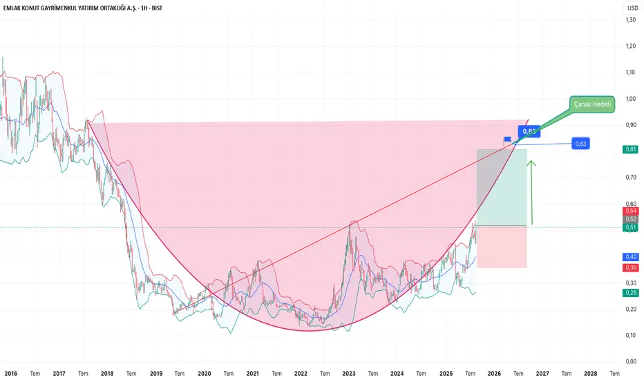 1 Temmuz itibariyle 18TL fiyat bandından paylaştığımız EKGYO hissesi geçen zaman zarfında (50) gün 21,36TL Fiyat bandından işlem görmekte olup hisse başına 3,36TL kazandırmış olup %19'luk bir artış gerçekleştirmiştir. Türkiyenin en büyük kamu GYO şirketi olan EKGYO için vites büyütme zamanı geldi diyebiliriz USD bazlı grafikte ana çanak hedefi 1$ ancak 0,83 cent (38 TL) fiyat bandını rahatlıkla test edeceğini öngörüyorum.