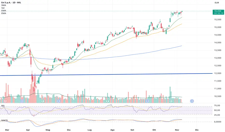 eni fiora dei nuovi massimi su spinta di oil al rialzo. ma quassù inizia a mancare ossigeno, prestate attenzione