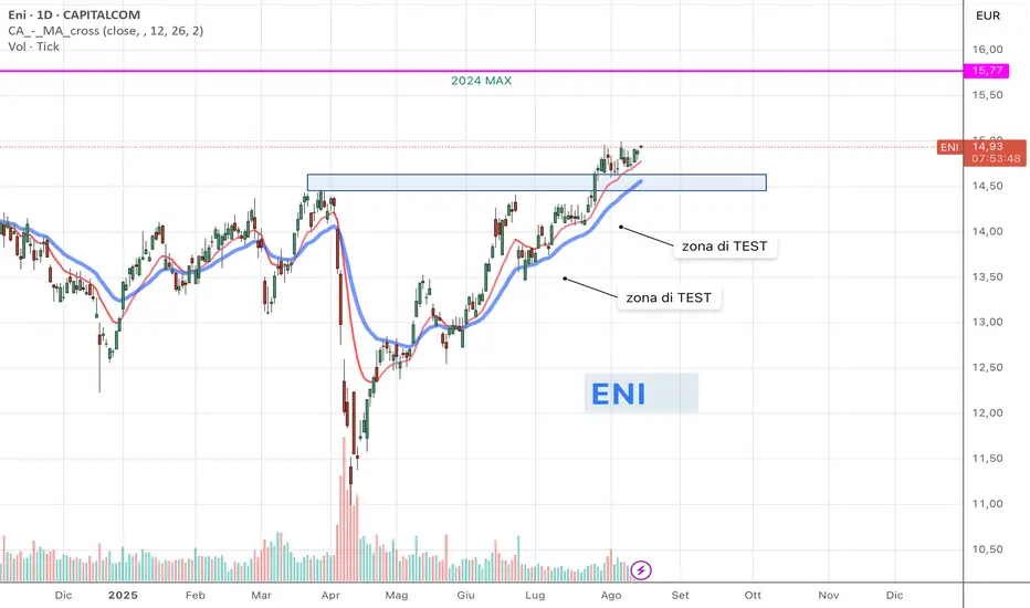 ENI continua la sua impressionante serie di candele rialziste superando la prima resistenza critica di 14,5 euro.