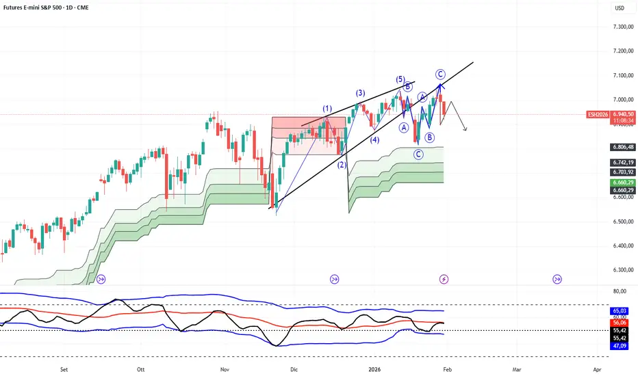 L'ipotesi è che la struttura generata da ieri, e fino a questa mattina, il future possa aver costruito solo un'onda A e di conseguenza ci aspetteremmo ancora una risalita verso i 7000 con un'onda B per poi ridiscendere nuovamente e forse rompere i supporti in area 6900.