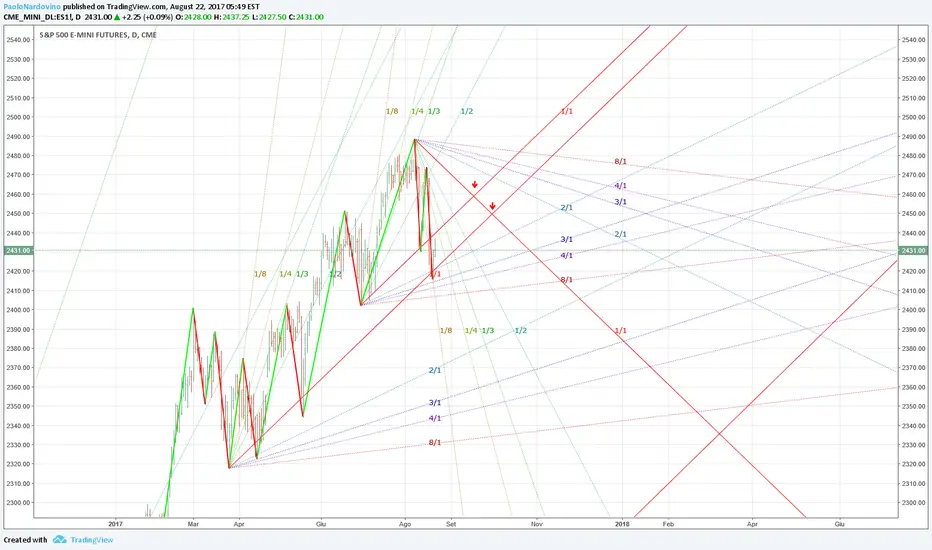 Il Future sull'indice S&P500 ha testato ieri l'angolo rialzista 1x1 di Gann originato dal minimo di marzo 2017. Il rimbalzo successivo può anche raggiungere, nelle prossime sedute, i livelli 2450 e 2460 facendo comunque restare inalterata la struttura ribassista che si è formata con l'inversione del Main Trend Daily indicator. Inversione di trend solo sopra 2474. Il test alle resistenze sarà considerato una nuova occasione per aprire posizioni short.