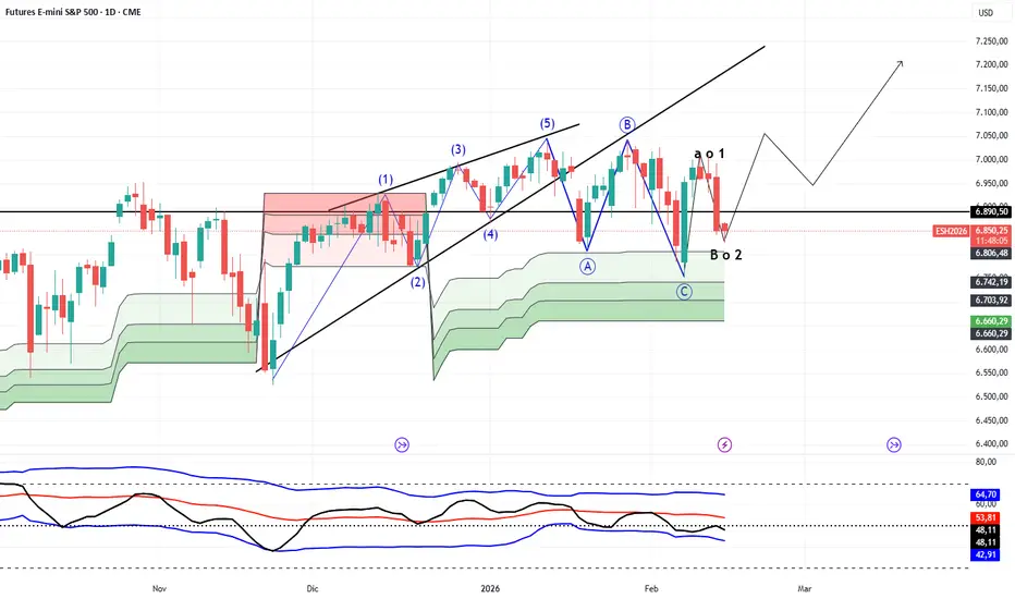 Ancora una volta le notizie hanno generato un movimento violento sugli indici azionari e nella seduta di ieri l'sp500 future ha rotto il supporto fissato dalla nostra analisi e stamattina si è arrestato a 6824. Momentaneamente teniamo buona ancora la classificazione che sarà annullata dalla violazione dei supporti in area 6800.