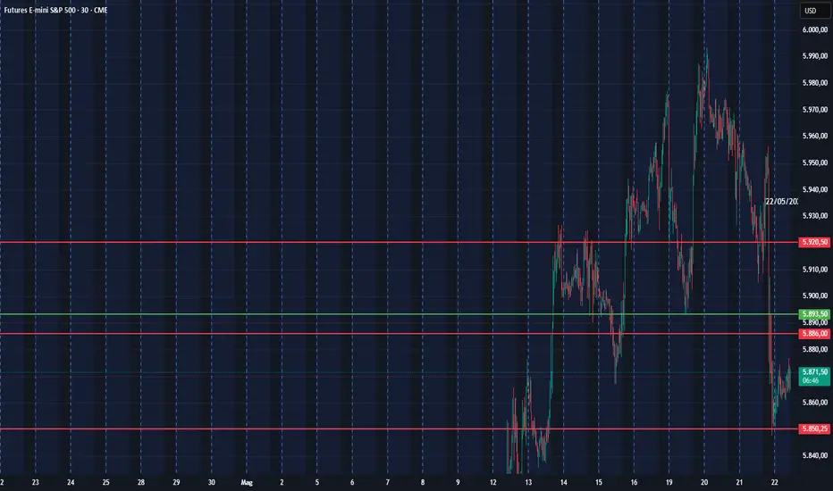 Oggi Stefano Serafini vede un S&P500 con zona di vendita in area 5886; sopra area 5893 andrebbe a rialzo fino in area 5920. A ribasso, sotto area 5850 potrebbe arrivare in area 5820.