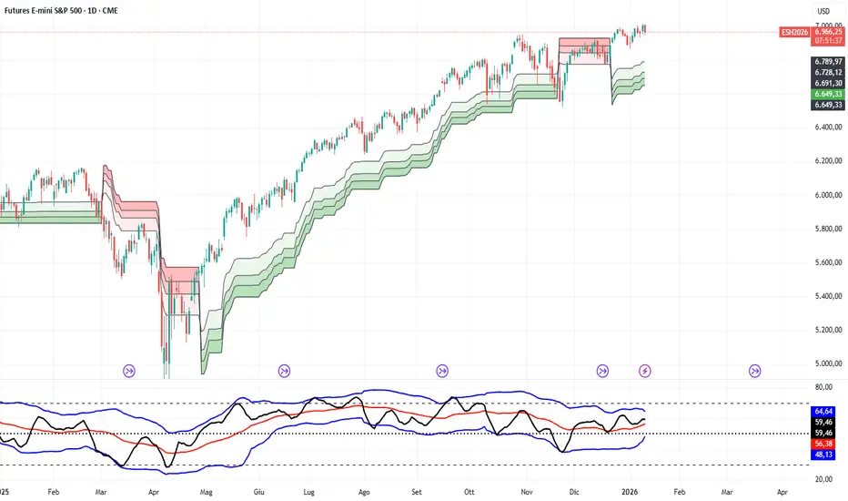 L'indicatore in basso è pronto per un movimento correttivo più profondo, ma per il momento l'area 6960 sorregge bene le quotazioni. Solo la rottura di questi livelli ci faranno pensare ad un movimento correttivo più profondo.