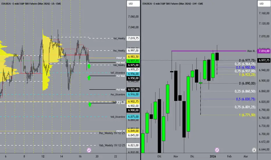 Nel caso in cui il prezzo riesca a reggere i 6975 o riparta dall’area 6950, tornando all’interno della Value Area settimanale:
