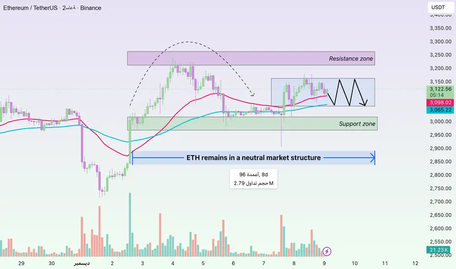 استنادًا إلى هذه العوامل، أتوقع استمرار ETH في التماسك أو احتمال عودة لاختبار منطقة 3,060–3,080 قبل إظهار حركة أوضح بعد اجتماع الفيدرالي.