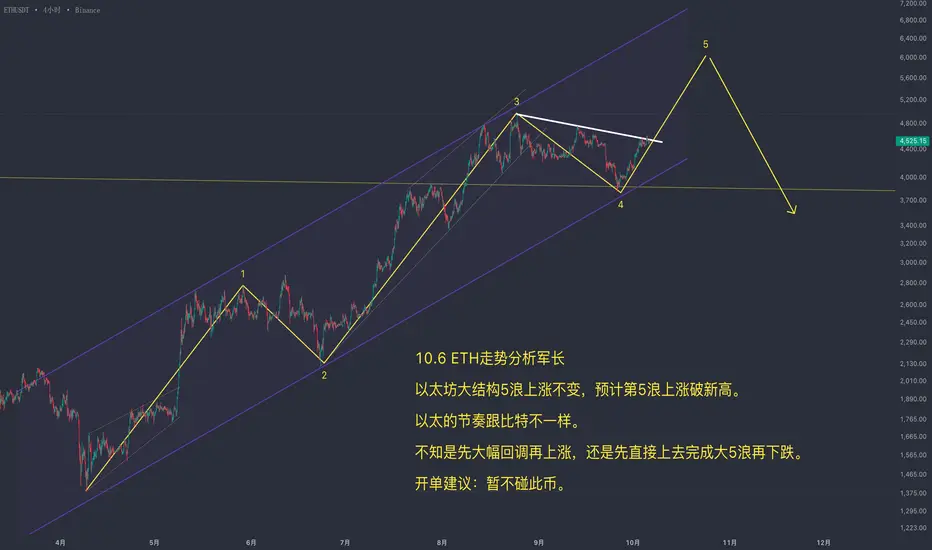 以太坊大结构5浪上涨不变,预计第5浪上涨破新高。
