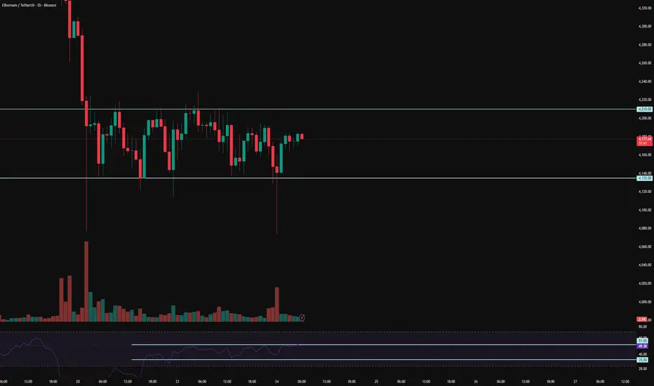 👀 On the 1-hour timeframe, Ethereum is currently ranging after its recent drop, sitting in a decision-making zone. It already faked the range low once and bounced back up, creating a clean trading structure. If ETH breaks above the $4,210 resistance, it could complete its correction and push higher. On the other hand, if ETH continues its deeper correction, a break and confirmation below the $4,135 support would open the way to lower levels.