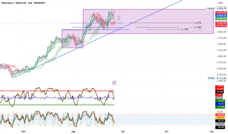 4s grafikte ETH 4.53k civarında; 21 KAMA 4.60k ve bulut 4.55–4.65 bandında. Osilatörler dipten yukarı dönüyor, baz senaryom 4.60k üstüne atıp 4.68–4.72 ardından 4.82–4.90 ve 4.95k testleri. 4.60k altında kalırsa 4.48–4.44 ilk destek, yükselen trend çizgisine denk gelen 4.30–4.25 ana savunmam; burası kırılmadıkça ana yükseliş görüşüm bozulmaz, 4.25 altı olursa 4.12–4.05 gündeme girer. Planım 4.48–4.44 bandında alıcı olmak, 4.60k üstü eklemek, 4.30 altı senaryoyu iptal etmektir. Görüşlerim tamamen kişiseldir, yatırım tavsiyesi değildir; tüm işlemler ve risk yönetimi kullanıcıya aittir, kaldıraç yüksek risk taşır, lütfen kendi araştırmanızı yapınız.Pubblicazioni correlate
