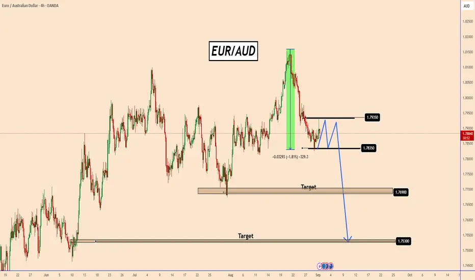 Right now, I expect a short pause or correction before the next leg down. The correction zone I’m watching is between 1.7835 and 1.7935—a potential area where price could bounce slightly before resuming its bearish trend.