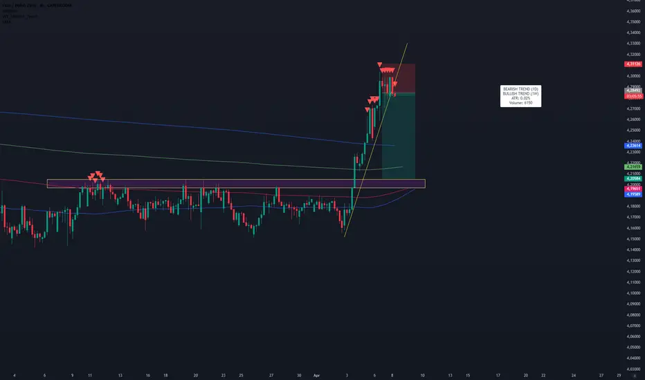 Salve, sono il Trader Andrea Russo e oggi voglio mostrarvi un'opportunità di investimento SHORT su EUR/PLN. Attualmente ci troviamo su un grafico a 4 ore (4H), e alcuni indicatori tecnici suggeriscono una pressione ribassista in aumento. I segnali di eccesso di acquisto e la perdita di slancio suggeriscono che potremmo trovarci di fronte a una possibile inversione al ribasso, rendendo questa configurazione particolarmente interessante.