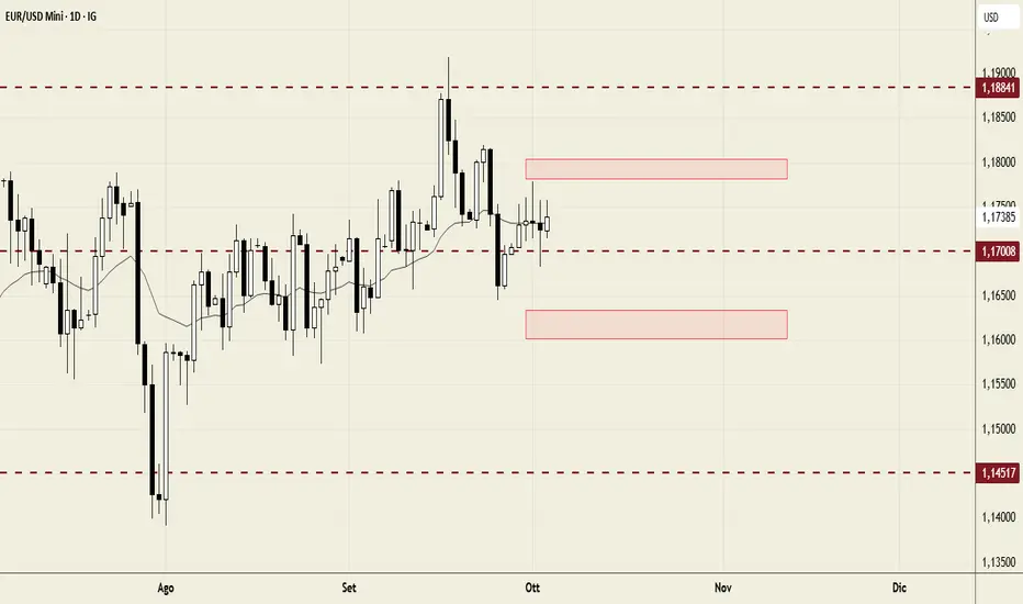 Nelle ultime settimane, la coppia EUR/USD è rimasta intrappolata in un'area di consolidamento, un'evoluzione che riflette un'indecisione di fondo nel mercato. Il prezzo si è mosso all'interno di un corridoio ben definito, con compratori e venditori che si contendono il controllo, senza che una delle due fazioni riesca a imporsi in modo netto.