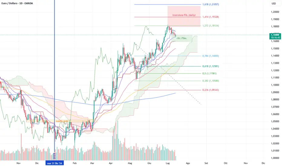 Dal punto di vista dei livelli tecnici, il cambio EUR/USD si mantiene al di sopra del ritracciamento di Fibonacci del 23,6% del rally compreso tra maggio e luglio, situato in area 1,1650, che rappresenta il primo supporto dinamico di rilievo. Un’eventuale estensione della correzione troverebbe un supporto più significativo in prossimità del ritracciamento del 38,2%, localizzato attorno a 1,1540.