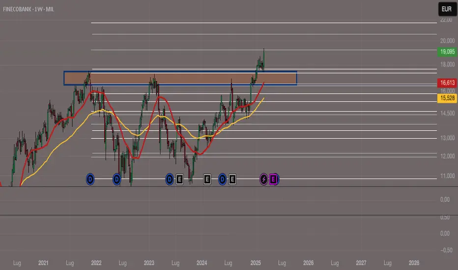 Abbiamo registrato un doppio minimo in area 11 eur e rotto a rialzo l'area di congestione rappresentata, retest avvenuto ed ora appare pronto per partire verso l'alto. Risk reward molto interessanti.
