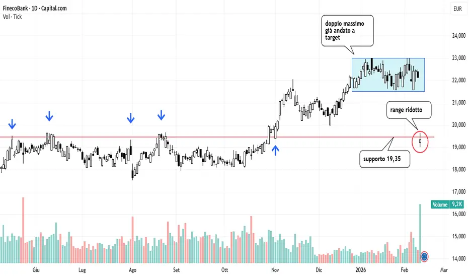 Il recente crollo di FinecoBank, innescato dai timori legati allo sviluppo dell’intelligenza artificiale e al ruolo di Anthropic, sembra per ora essersi arrestato su un’area di supporto tecnicamente rilevante