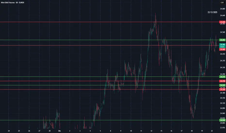 Per quanto riguarda il DAX, il target rialzista della giornata è a 24600. Individua una zona di negatività in 24460, che può condurre verso il supporto a 24275. Segnala inoltre un break-out ribassista in 24250.