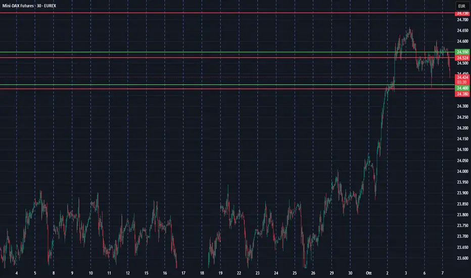 Il DAX ha una resistenza in area 24524 e supporti in area 24400. Gamma negatività a partire da area 24380. Superata l’area del 24550 ci si imposterebbe al rialzo , con obiettivo 24730