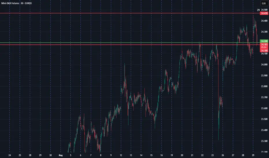 Per quanto riguarda il DAX, la zona di acquisto si trova in area 24200 e zona di resistenza in area 24470. A ribasso, la zona di vendita si trova in area 24180.