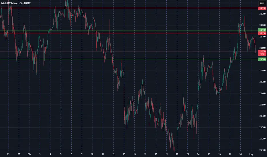 Per quanto riguarda il DAX supporti in area 23900 e resistenza in zona 24130. Area obiettivo della giornata 24350. Sopra area 24150 potrebbero partire gli acquisti.