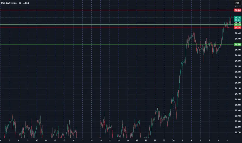 Il DAX con gamma negatività a partire da area 24705 e rimbalzi in zona 24550. Supporti in area 24730, con obiettivo 24860.