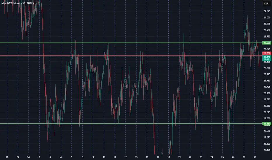 Il DAX ha una resistenza in area 23850 e supporti in area 23580. Gamma positività in area 23900 con venditori in zona 24133.