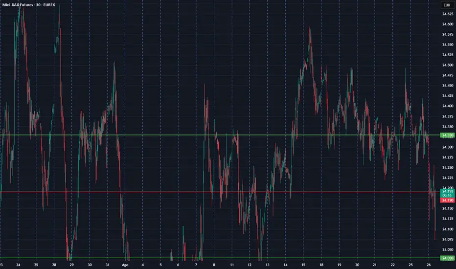 Il DAX ha un supporto in area 24030 e resistenze in area 24190. Break out rialzista sopra area 24330