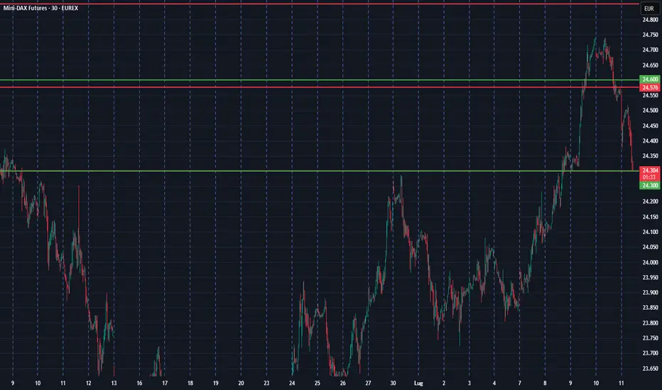Per quanto riguarda il DAX supporto in area 24300. Zona di rottura ribassista in area 24575. Sopra 24600 ci sarebbe positività.