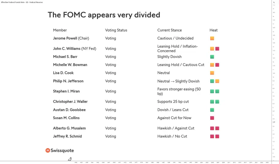 Oggi la distribuzione delle opinioni mostra che bastano poche voci per far pendere la bilancia. Il Presidente Jerome Powell, solitamente figura di consenso, si mostra particolarmente prudente, complicando ulteriormente la lettura delle dinamiche interne.