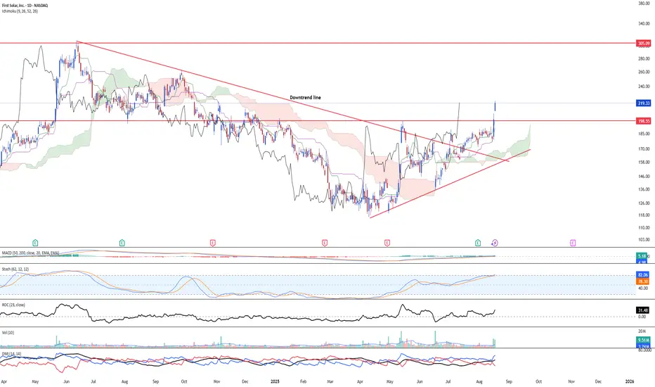 MACD has confirmed the upside momentum after both the signal/MACD line and histogram is above the zero line. Stochastic oscillator has been rising steadily, together with the 23-period ROC. Long-term target 350.00