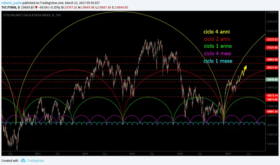 Adesso se rispetta i cicli si noteranno che quelli a 4,2 anni e 4,1 mese sono al rialzo, mentre quello a 1 anno è in fasi di lateralità.