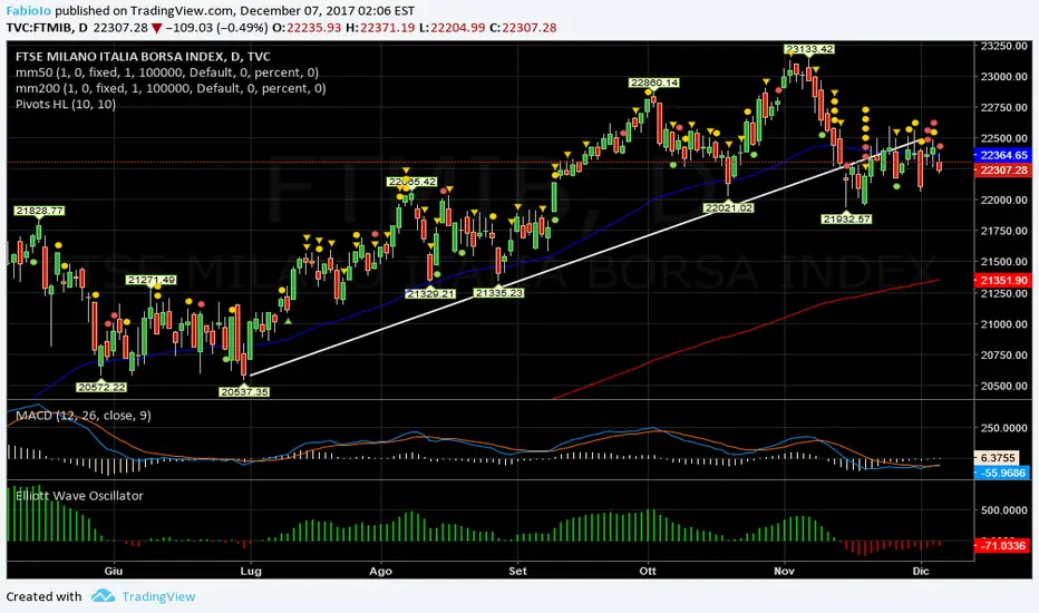 last price 22307,28/ -0,49%/ Forza1 = + - (SHORT da 22297,08) del 14/11/2017 ad oggi 0,05%/Forza2 = - -/Last Cycle SHORT 13-11-2017 da 22437,64 Giorni 18 S/Ad oggi = GAIN 0,58% / StcForza2 = negat. / Hma + / DMI DOWN /