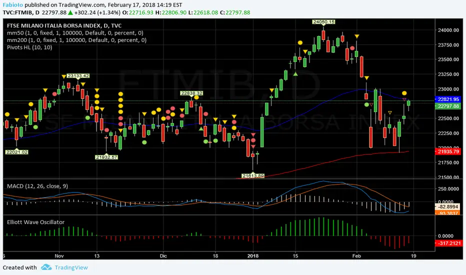 Forza1 = + - (SHORT da 23801,55) del 29/1/2018 ad oggi -4,22%/Forza2 = + -/Last Cycle SHORT 1-2-2018 da 23541,46 Giorni 12 S/Ad oggi = GAIN 3,26% / Hma + / last price 22797,88/ 1,34%/ CyOk : negativo /Hma + 15/2 22495,64 1,34% gg. 1 / Ciclo2 neg. 25-1-2018=23719,81(-3,89%)/negativo// DMI DOWN /