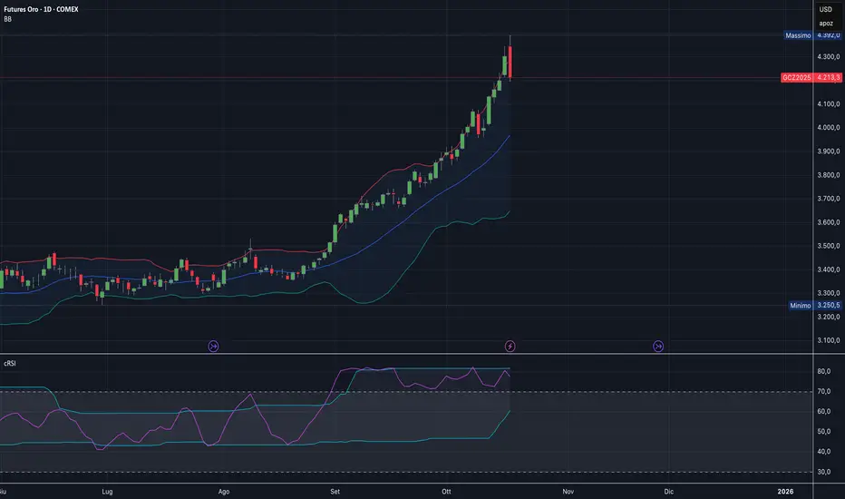 Ps. nei timeframe minori mi ritorna un altro valore, segnando un recupero nel finale dell'oro, tuttavia anche nel settimanale mi segnala, come nel daily una chiusura a 4213,3, quindi ai fini dell'analisi prendo per buono il valore indicato nella chiusura daily.