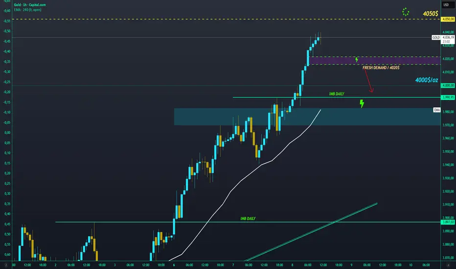 La prima è quella dei 4020$, prima demand in cui valuterò un rialzo per il target momentaneamente finale dei 4050$, questa è l'unica zona che può darmi anche un po' di short in caso di rottura a ribasso, ovviamente non è qualcosa che valuterei, è solo per dire che in caso di rottura ho già altre zone più basse in cui valuterò: ovvero la soglia psicologica dei 4000$ (che anch'essa in caso di rottura a ribasso può fare da resistenza), e poi i 2 imbalance daily rispettivamente ai 3990$ il primo e ai 3900$ per oncia il secondo.