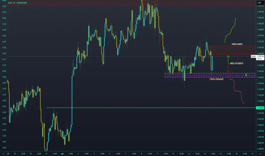 Attualmente e in attesa dei sussidi delle 14:30, baso tutta la mia analisi su 2 zone che definiscono l'area di gioco: il supporto dei 3340$ e la resistenza dei 3365$ per oncia.