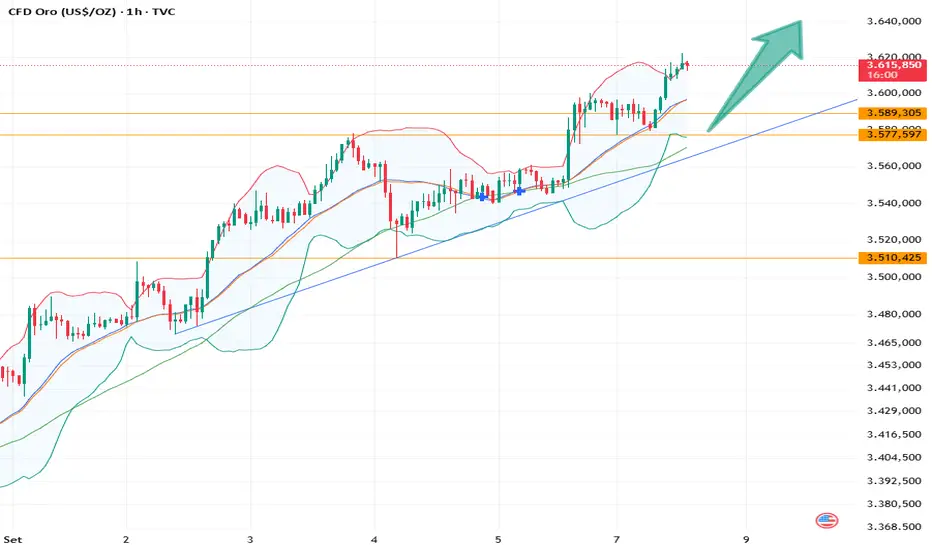 Raccomandazioni per il trading sull'oro: Sulla base dell'attuale analisi di mercato, si prevede che il supporto si trovi vicino al livello 3589-3600 sul grafico a un'ora, con il supporto di ritracciamento più alto vicino a 3577 sul grafico a quattro ore. Si prevede una pressione al rialzo vicina al livello 3620-50. Il livello 3600/3589 rappresenta la linea di demarcazione a breve termine tra rialzisti e ribassisti. Se il grafico a un'ora si stabilizza a questo livello, continuate ad acquistare sui ribassi e ad essere rialzisti.