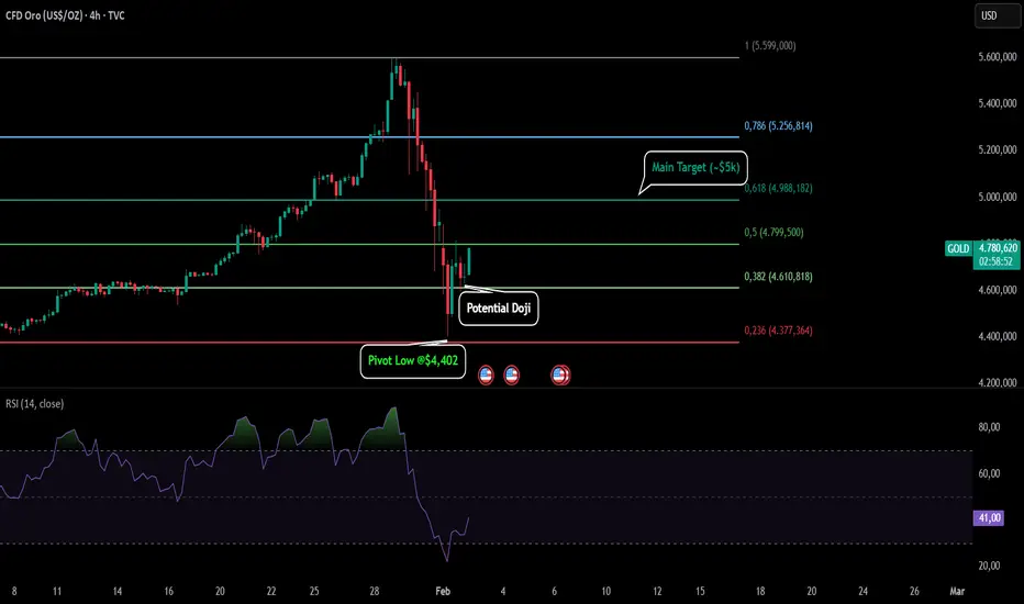 Ora, a 4 ore, il prezzo sta cercando di creare un doji di inversione a 4 ore. Se gli acquirenti riescono a mantenere questo livello e a superare il livello di Fibonacci 0,5, allora 0,618 è l'obiettivo principale.