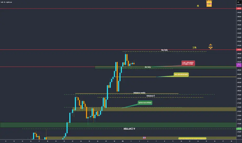 Gold si trova attualmente vicino ai 3900, proprio in corrispondenza della chiusura mensile di settembre e apertura di ottobre.