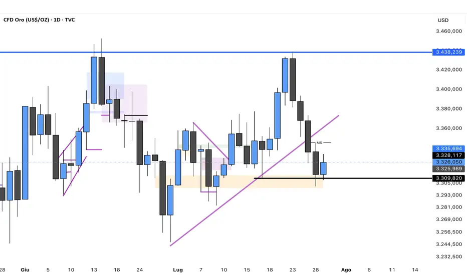 Il prezzo del GOLD, dopo lo sweep del primo minimo del canale rialzista, rimbalza al rialzo su un IFVG H4. Il rimbalzo sembra sano, tuttavia, sarebbe meglio aspettare almeno due candele daily rialziste prima di essere certi che il prezzo non tenterà di continuare lo sweep.