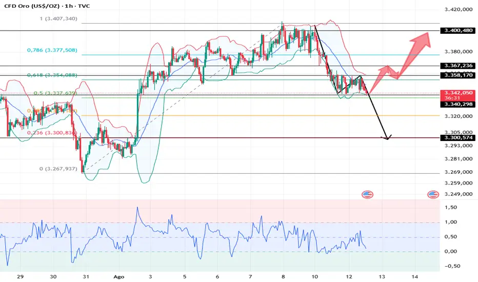 Resistenza grafico a 1 ora: 3358, Supporto: 3340.
