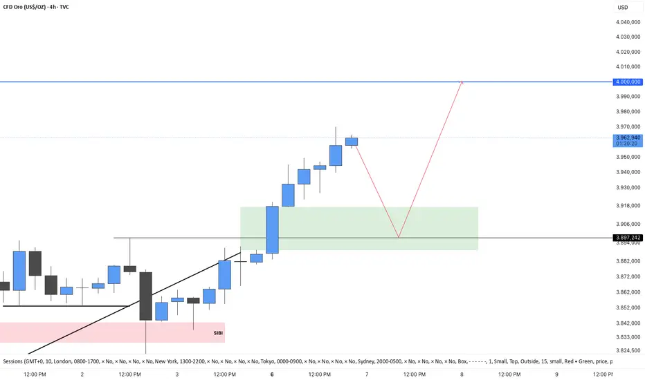 📊 Durante la giornata, però, si nota che le candele iniziano a perdere volatilità rialzista, il che potrebbe causare una fase di consolidamento al ribasso. Questa consolidazione dovrebbe scendere fino all’FVG segnato dal rettangolo verde per poi rimbalzare verso l’alto fino alla zona dei 4'000 💰