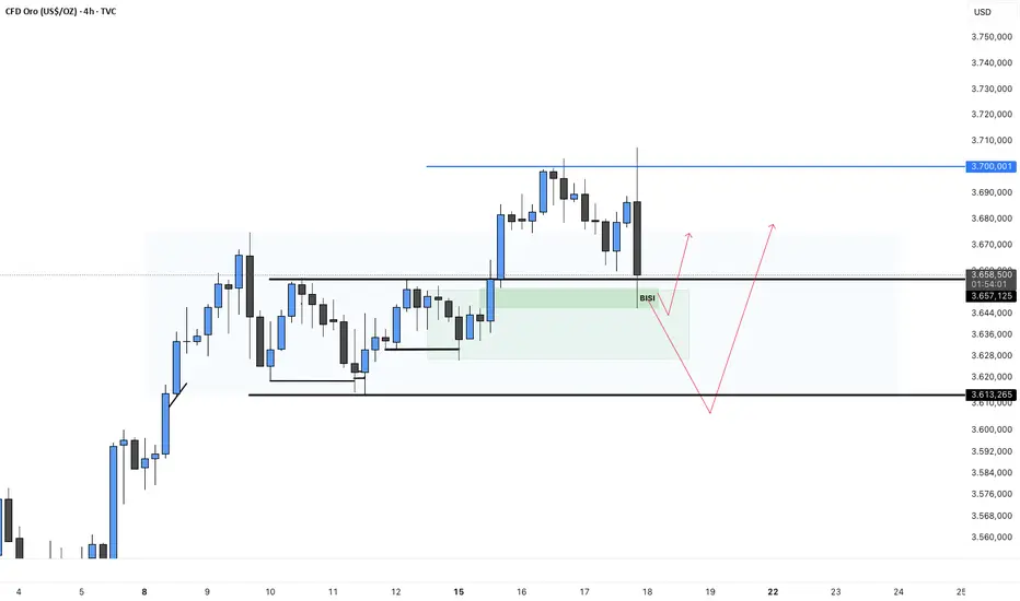 Dopo essere partito per ritestare la zona dei 3.700, già respinta ieri, il prezzo è stato nuovamente respinto con una volatilità molto più forte dovuta al FOMC. A questo punto, il prezzo sembra cambiare direzione: potrebbe provare a rimbalzare direttamente sulla zona del BISI e della DEMAND ZONE, ma vista la forte pressione ribassista, non dovrebbe salire molto.