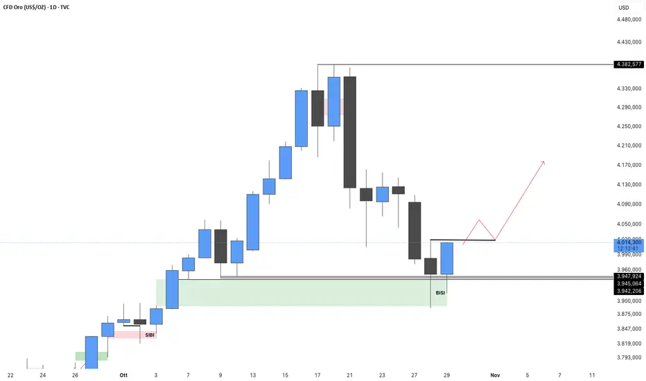 Il prezzo del GOLD, dopo lo sweep di ieri, rimbalza al rialzo durante la giornata 📈✨