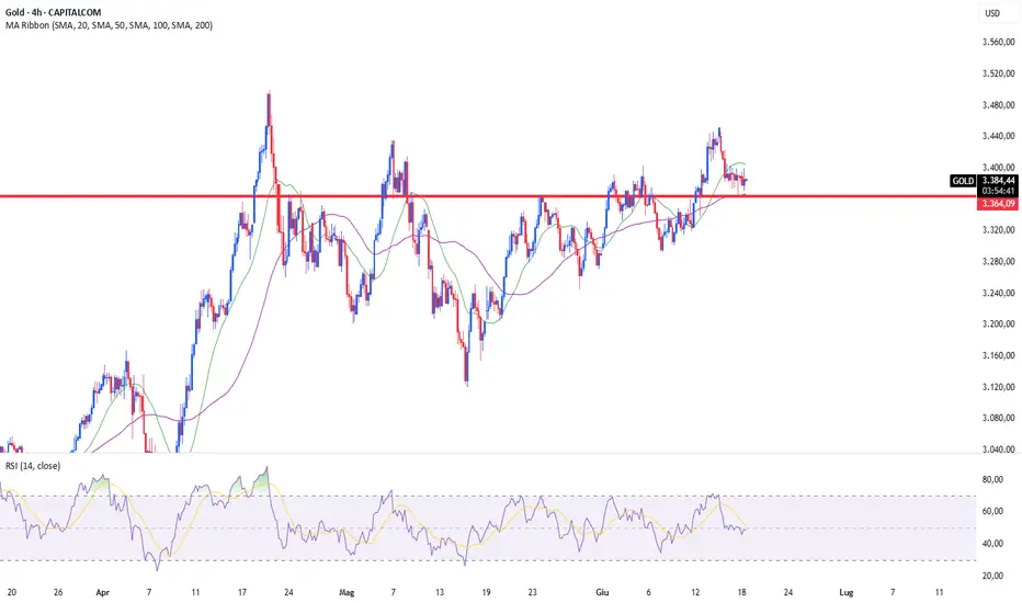 Il prezzo sta testando positivamente il supporto a 3364 che coincide con la media mobile lenta sul time frame 4h