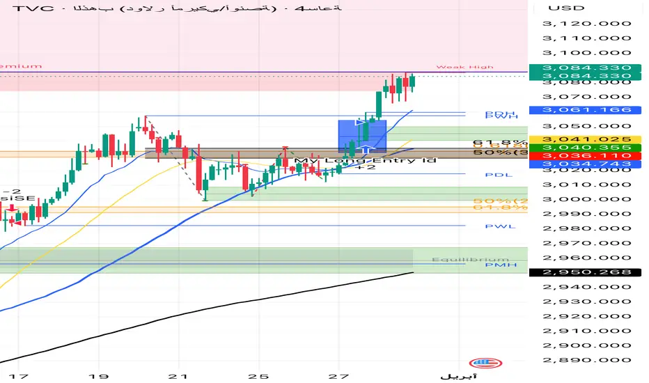 • Weak High قريب من 3084$، والسعر يختبر هذه القمة حاليًا.