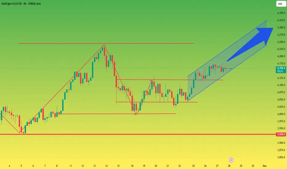 After a period of steady rise, gold prices have been fluctuating narrowly around previous highs recently, with the range of fluctuation gradually narrowing. Market expectations for a further rate cut by the Federal Reserve in December continue to rise, coupled with a positive outlook for geopolitical peace negotiations, which has boosted global risk appetite. Some funds have shifted from safe-haven assets to risk assets, putting some downward pressure on gold prices in the short term. Although the US economic data released this week showed a mixed picture, it did not significantly change the market's overall assessment of the monetary policy path. The structural discrepancies in the data reinforced expectations that the Federal Reserve would maintain its accommodative stance, causing the dollar index to fall to a one-week low and providing strong support for gold.