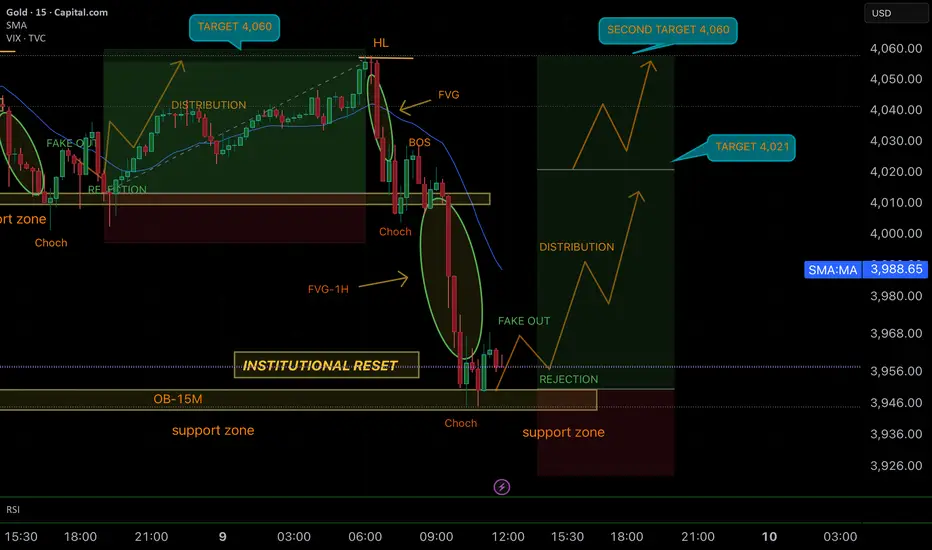 • After reaching the High (HL) near 4,060, price broke down with a Break of Structure (BOS), creating a clear institutional reset.