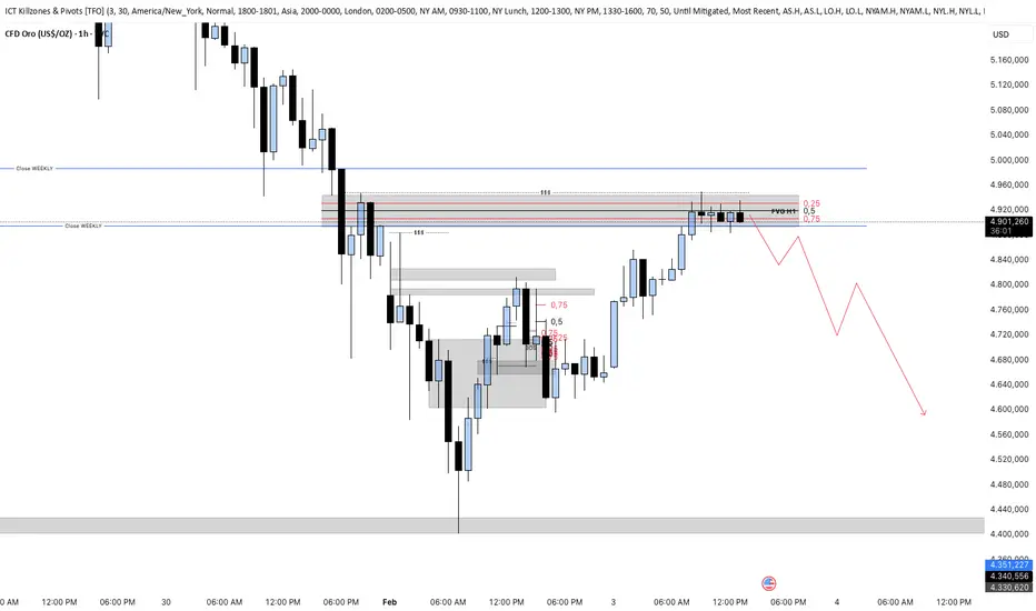Durante la sessione di Londra, il prezzo dell’oro sweepa finalmente l’high tra i weekly close, il che significa che ha preso gli highs più importanti e può quindi ora rimbalzare al ribasso 📉🔄.